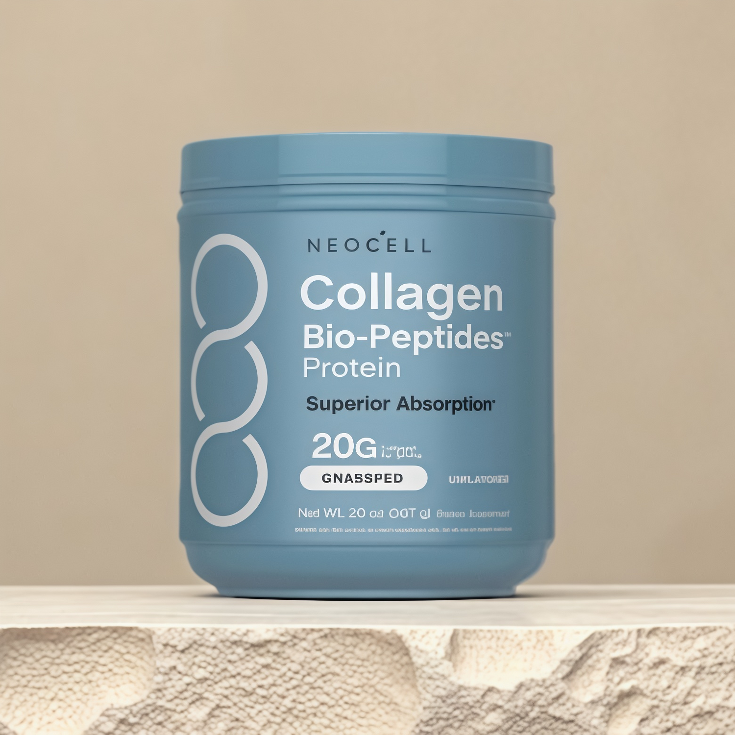 NeoCell Collagen Bio-Peptides Protein provides 18 grams of proteinper serving from collagen. Collagen peptides are a source of 18essential and non-essential amino acids, including Glycine,Hydroxyproline, Proline, and Leucine, but do not include Tryptophan.
